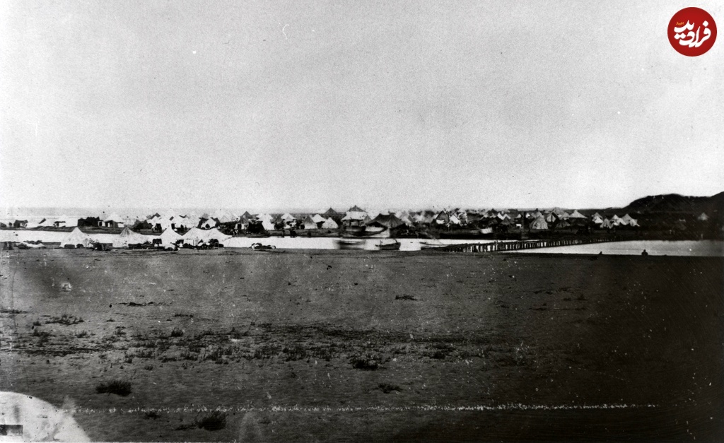 دورنمای اردوی ناصرالدین شاه در ساحل دریای خزر در فریدونکنار