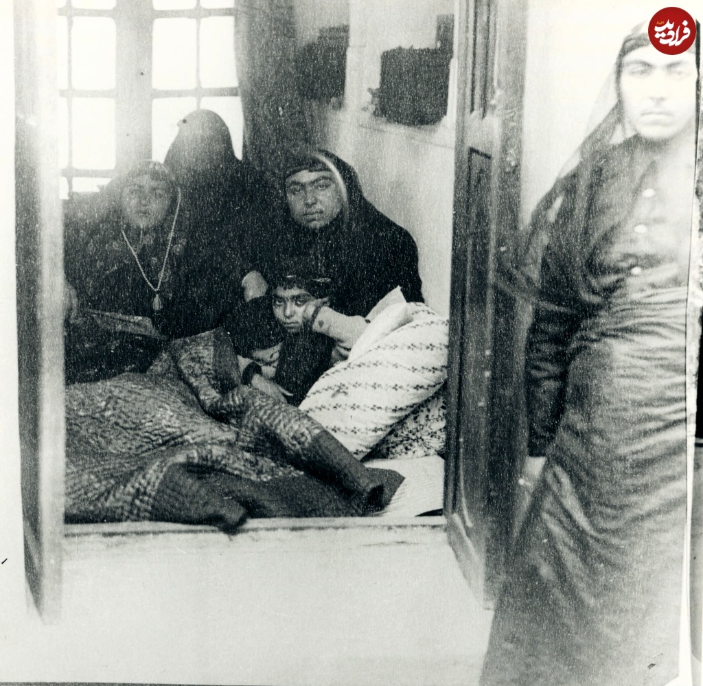 این عکسی است که خود ناصرالدین شاه آن را از گروهی از همسرانش گرفته و توضیحاتی را در حاشیه آن نوشته است؛ طبق این توضیحات، زنی که در رختخواب خوابیده «ایرانی» نام دارد که در آن زمان بیمار بوده است. زنان دیگری از جمله باغبانباشی، سید خانم و چیذری نیز در این جمع حضور دارند.