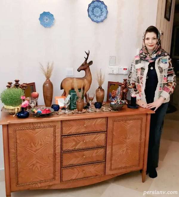 تصویر روز | سفره هفت سین با چیدمانی خاص در خانه شیده معاونی مجری دهه ۶۰ / تجلی زیبایی و طراحی خاص روی کنسول چوبی با تزیینات سنتی و مدرن