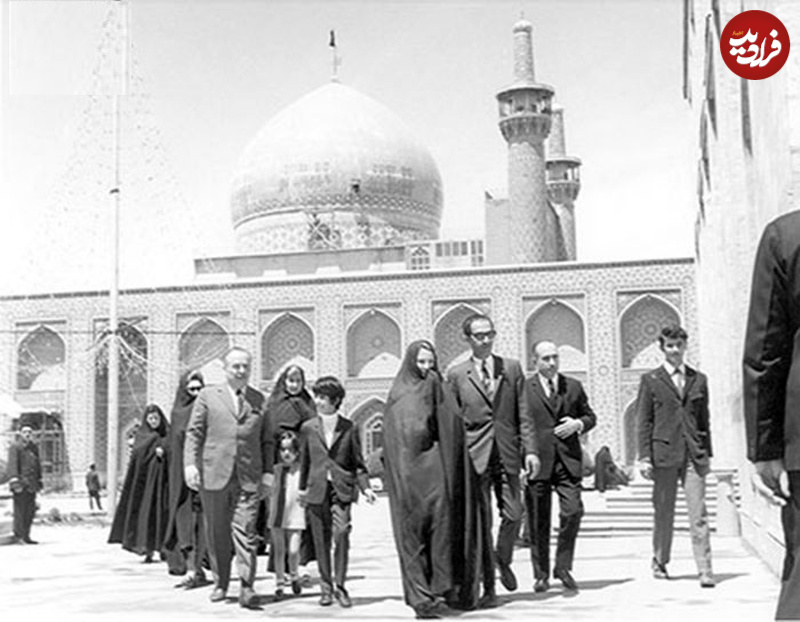 عکسی که در زیر ملاحظه میکنید، احمدرضا پهلوی را به همراه همسر و فرزندانش در حال بازدید از یکی از اماکن مقدسه نشان میدهد. تاریخ عکس احتمالا مربوط به اواخر دهه 30 یا دهۀ 40 است.