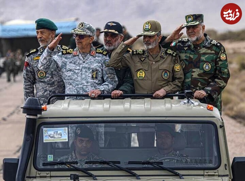 عکس؛ سفر به تاریخ؛ «سرلشکر موسوی و سرلشکر باقری» سوار بر خودروی ارتشی در حال سان دیدن از هوانیروز