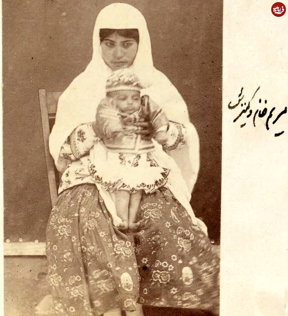 عکس؛ سفر به تاریخ؛ «مریم خانم، دختر حاکم ساوجبلاغ» در آغوش «کنیزش»؛ 120 سال قبل