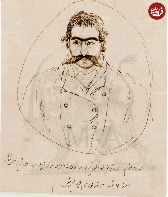 تصویری که در زیر ملاحظه میکنید، طرحی است که ناصرالدین شاه قاجار در سال 1239 شمسی در منطقۀ جاجرود و در جریان یکی از سفرهای تفریحیاش، از چهرۀ خودش در مقابل آینه کشیده است.