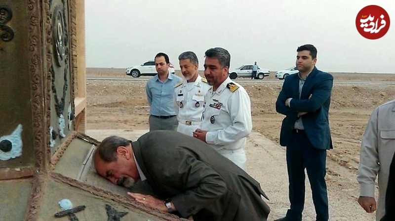 عکس؛ سفر به تاریخ؛ گریۀ شدید «ناخدا صمدی» در بازدید از یادبود تکاوران خرمشهر به همراه «دریادار سیاری»