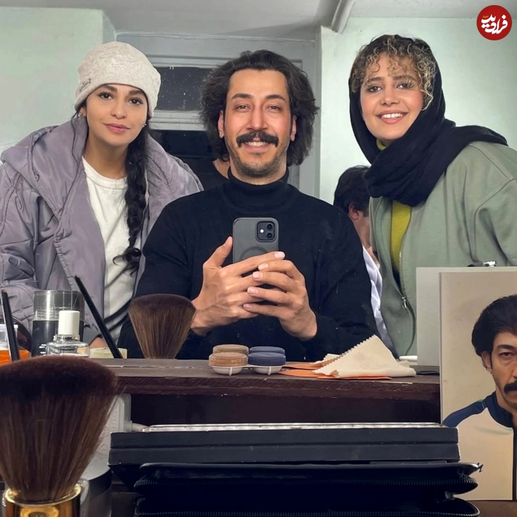 عکس؛ سفر در زمان؛ «بهتاش فریبا» در اتاق گریم سریال پایتخت 7؛ سال 1403