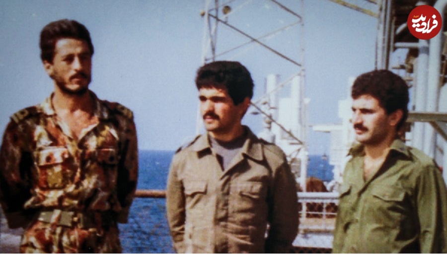 عکس؛ سفر در زمان؛ «دریادار سیاری در کنار دو رزمنده روی عرشه کشتی»؛ دهه 60