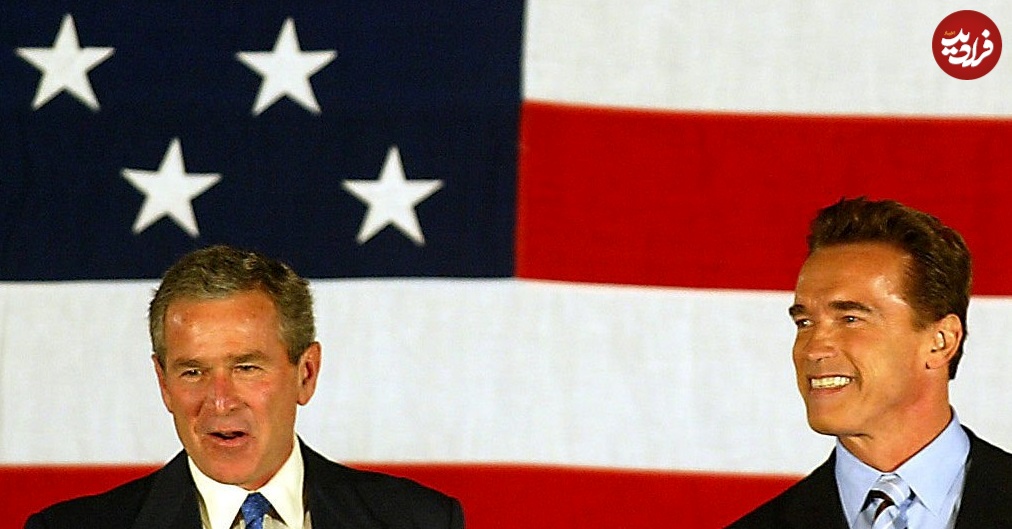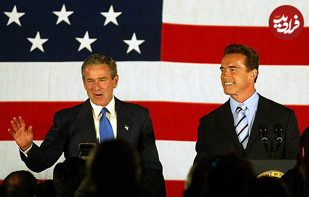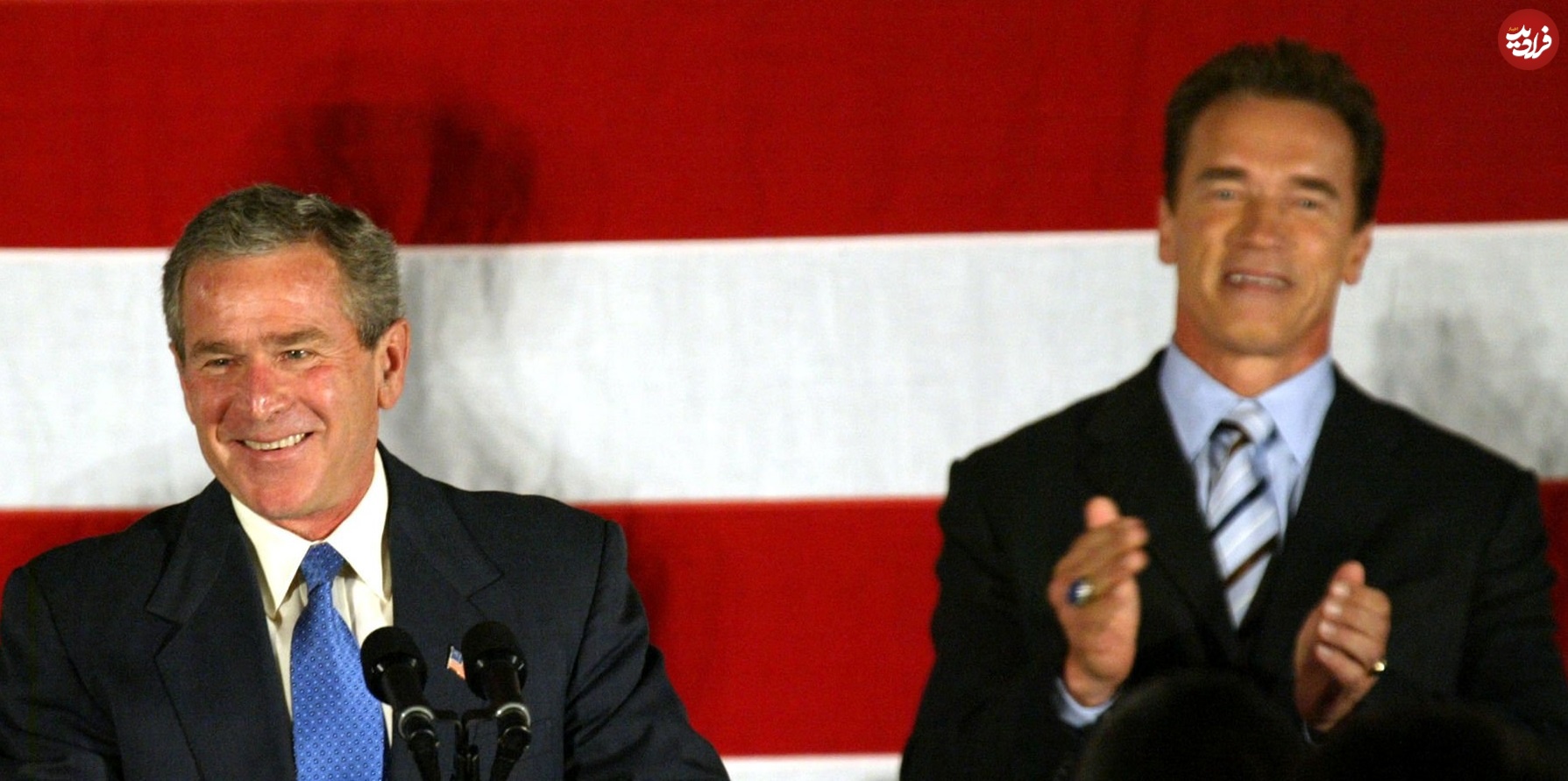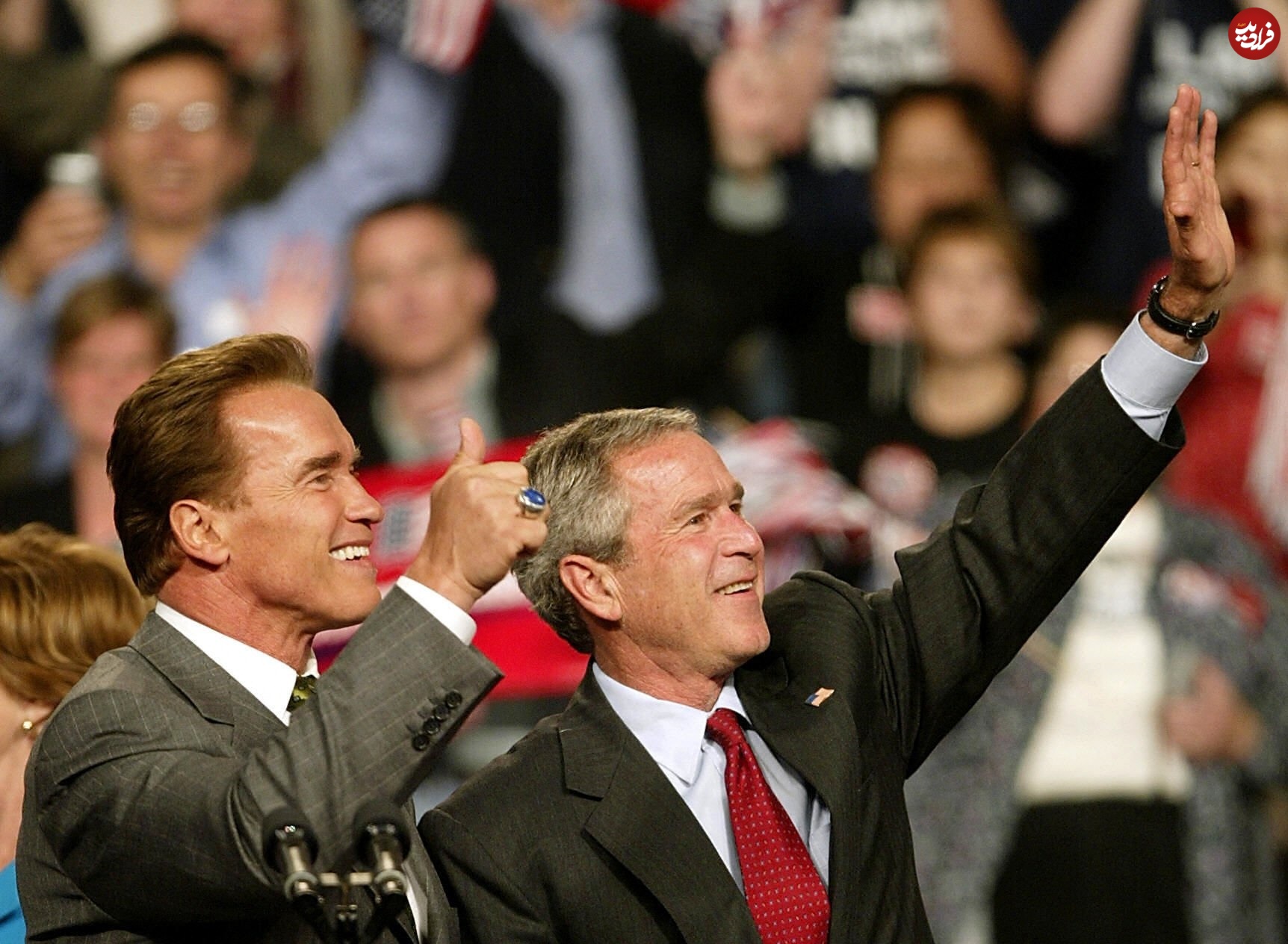 عکس؛ سفر در زمان؛ دیدار «آرنولدشوارتزنگر و جرج بوش»؛ سال 1382