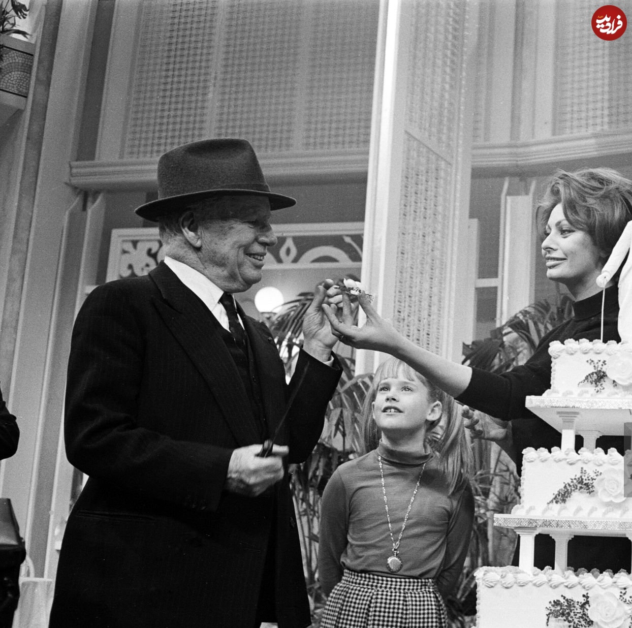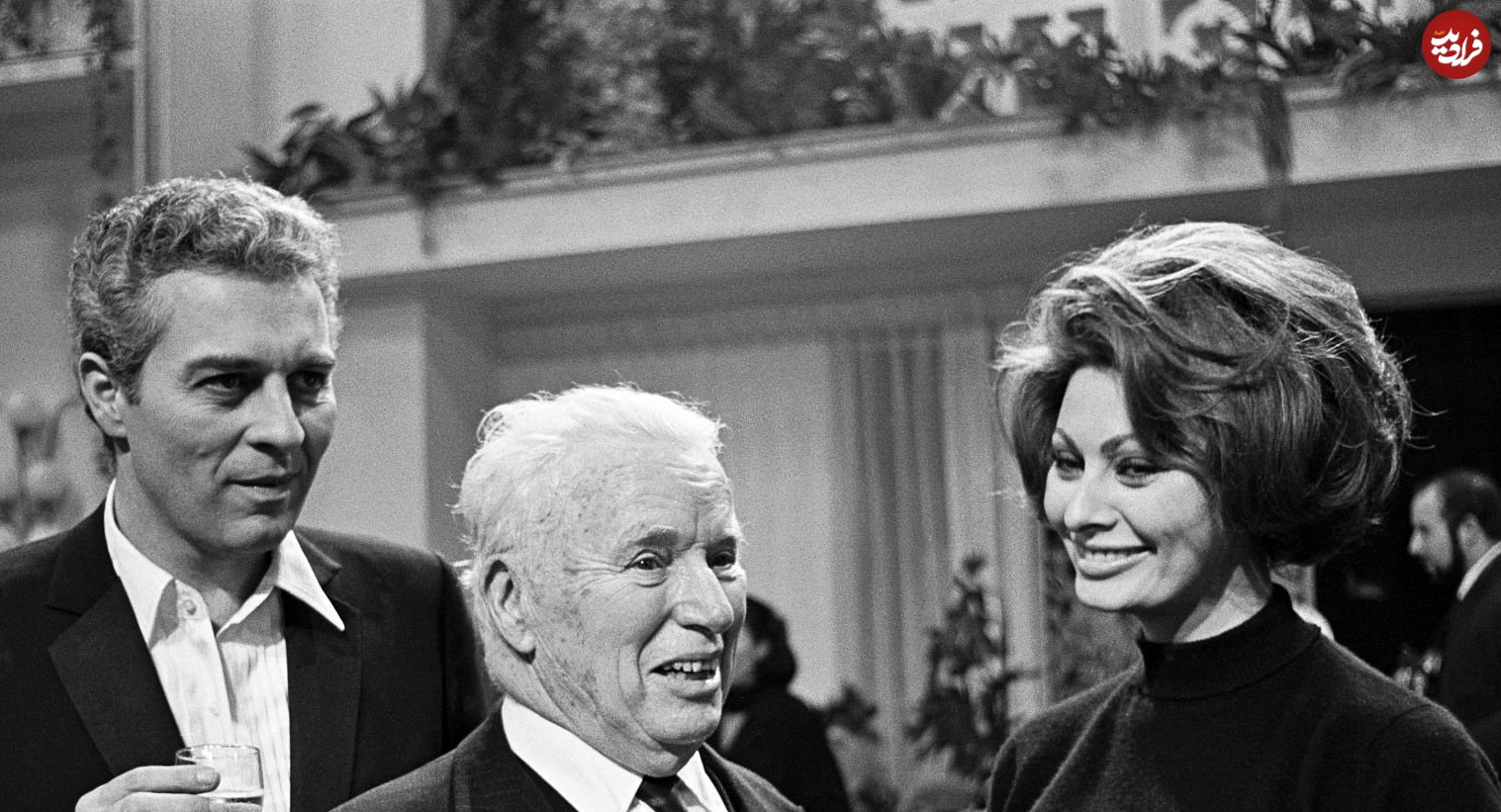 عکس؛ سفر در زمان؛ دیدار «سوفیا لورن 32 ساله با چاپلین 77 ساله»؛ سال 1345