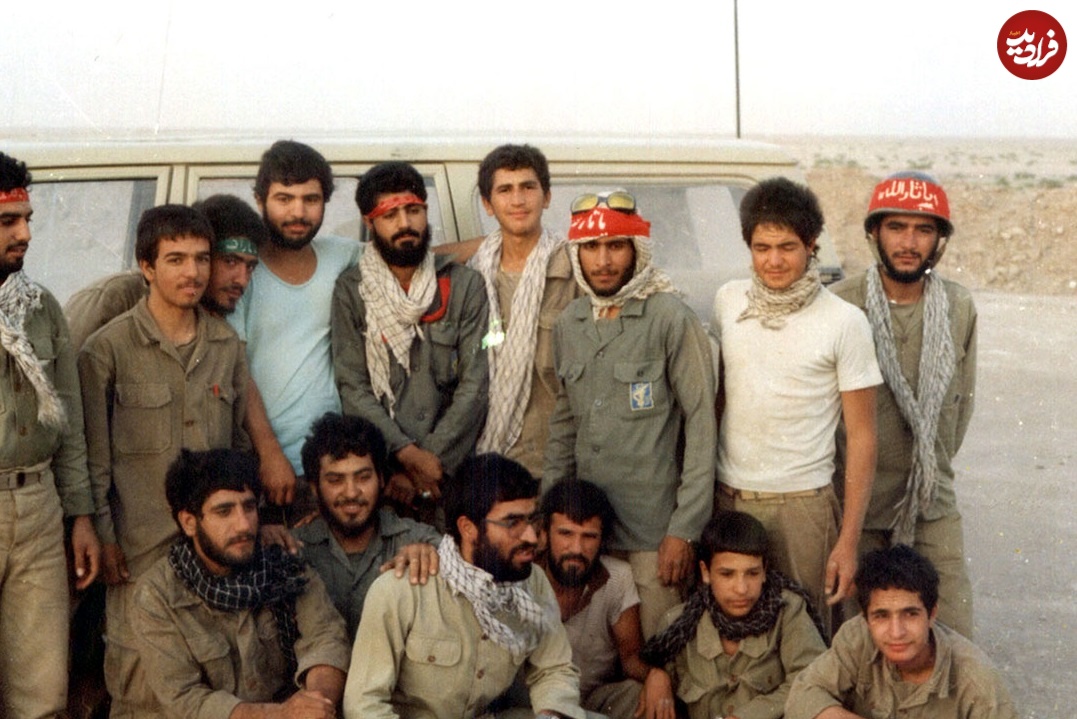 عکس؛ سفر در زمان؛ «سردار سلیمانی در جبهه و در کنار 14 تن از همرزمان اش»؛ دهه 60