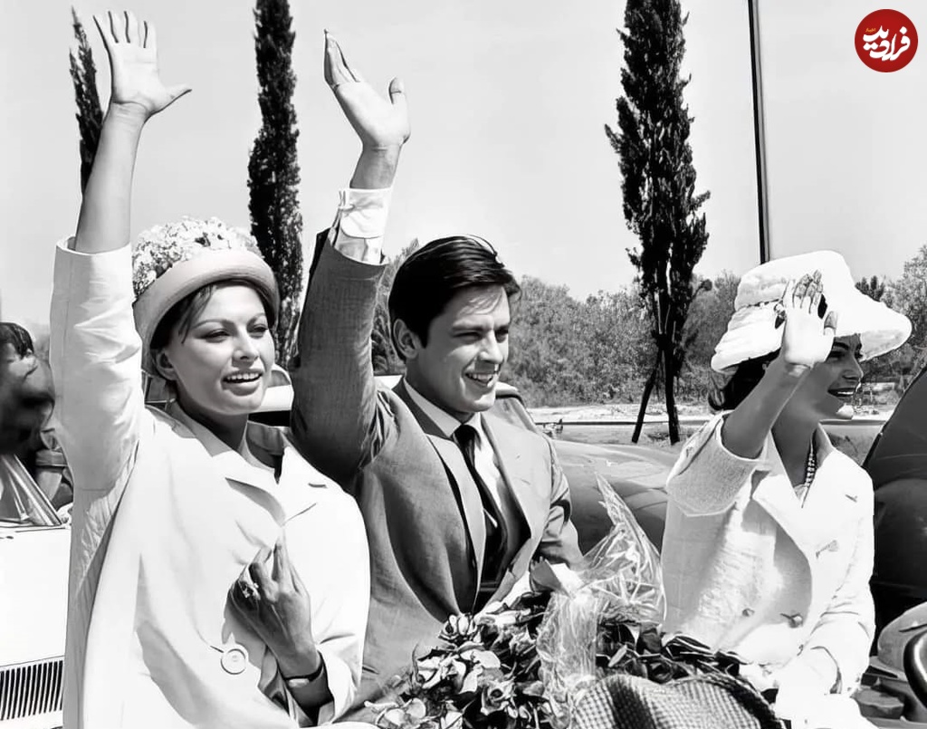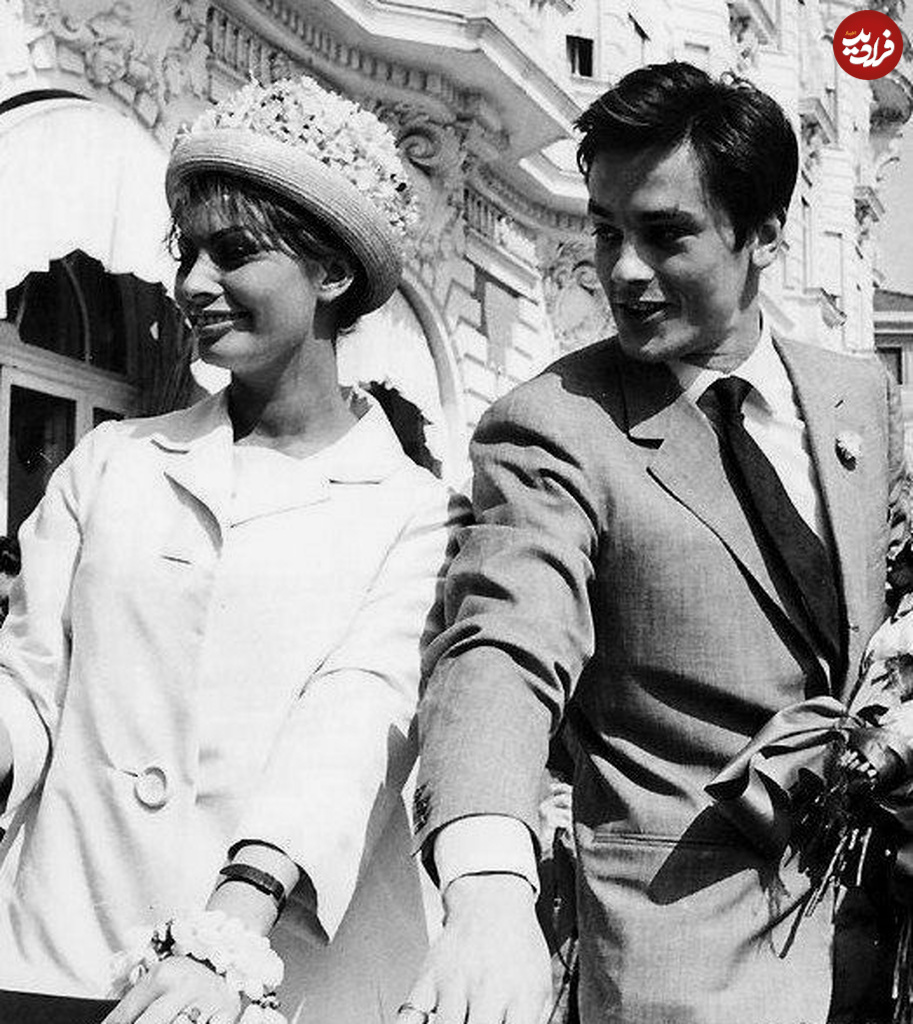 عکس؛ سفر در زمان؛ «سوفیا لورن 29 ساله در کنار آلن دلون 28 ساله»؛ سال 1340