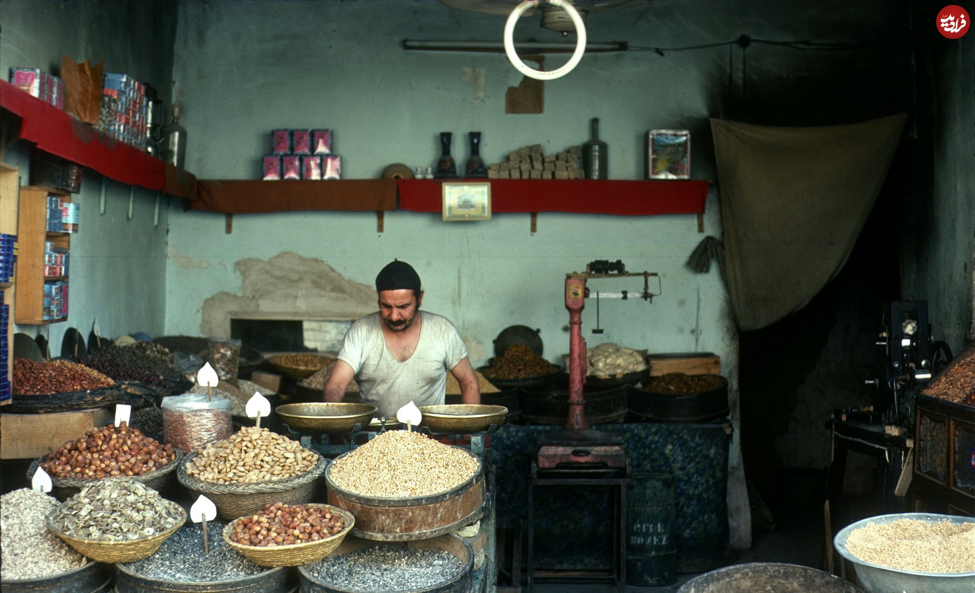 عکس؛ سفر در زمان؛ شکل و شمایل «یک مغازه آجیل فروش و صاحب اش» در سال 55