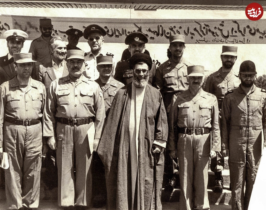 در ادامه تصویری کمتر دیده شده و خاص از سرلشکر شهید عباس بابایی را در کنار فرماندهان ارتش و رهبر انقلاب در دهه 60 و در دوران جنگ می بینید.(شهید بابایی نفر اول در سمت راست تصویر)