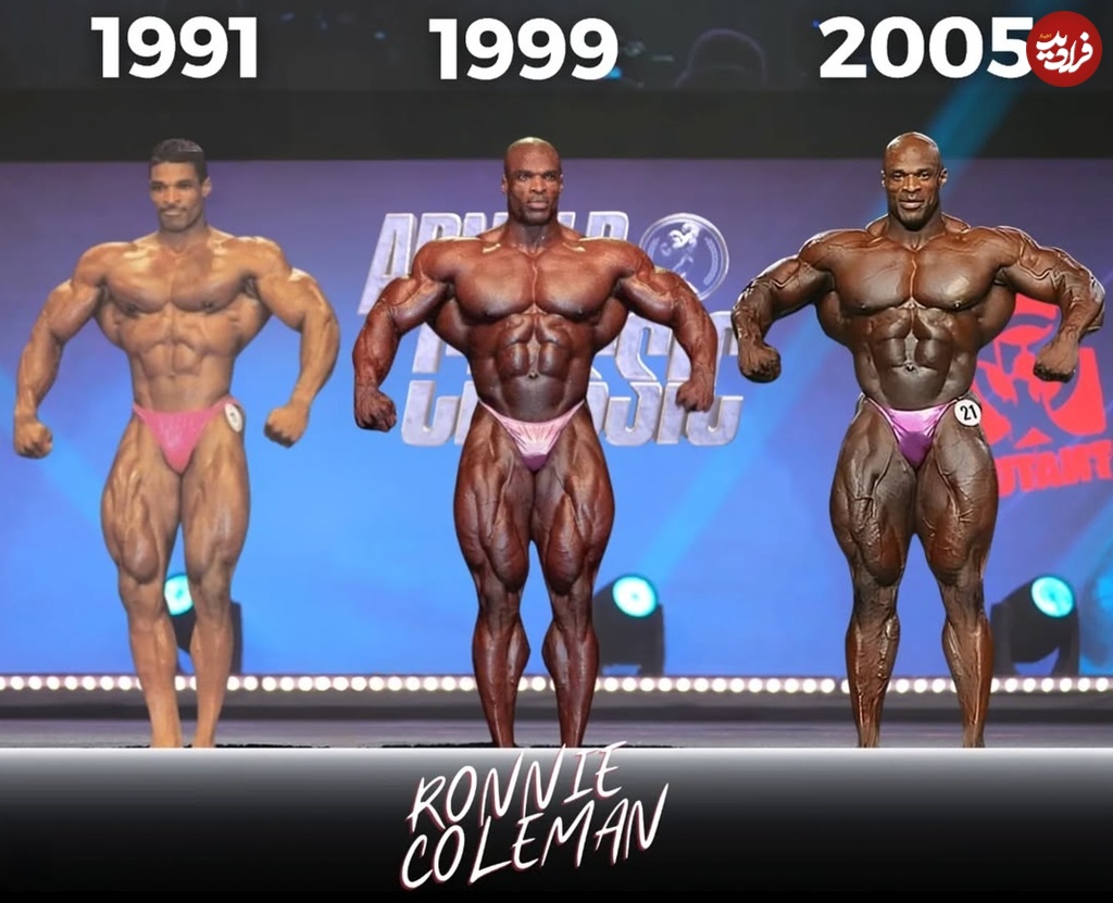 در ادامه تصویری جالب و دیدنی از فیگورهای رونی کلمن را در سال 70، 78 و 1384 هجری شمسی و در مسابقات مهم جهان از جمله مسترالمپیا مشاهد می کنید.