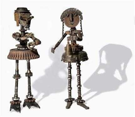 در مجسمههای ژازه تباتبایی میل سوپاپ، رینگ و یاتاقان، چرخدنده، پیستون، مهره و فنر آدم شدهاند. همه اینها ترکیبی بینظیر از آهن خشن نرم و مهربان شده را به تصویر کشیده است.