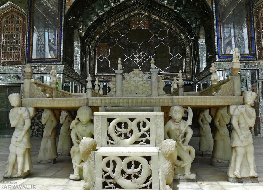پورنصری نژاد در ادامه از طرح و حجاری تخت مرمر سخن گفت: «تخت مرمر که به استادکاران اصفهانی سفارش داده شده بود با حجاری فرشتگان و گچبریهای بالای آن یکی دیگر از نمادهای حجمی آن دوران بود که در ایوان مرمر کاخ گلستان نصب شد.» تخت مرمر که به تخت سلیمانی نیز معروف بود با شصتوپنج قطعه مرمر متصلبههم ساخته شد.