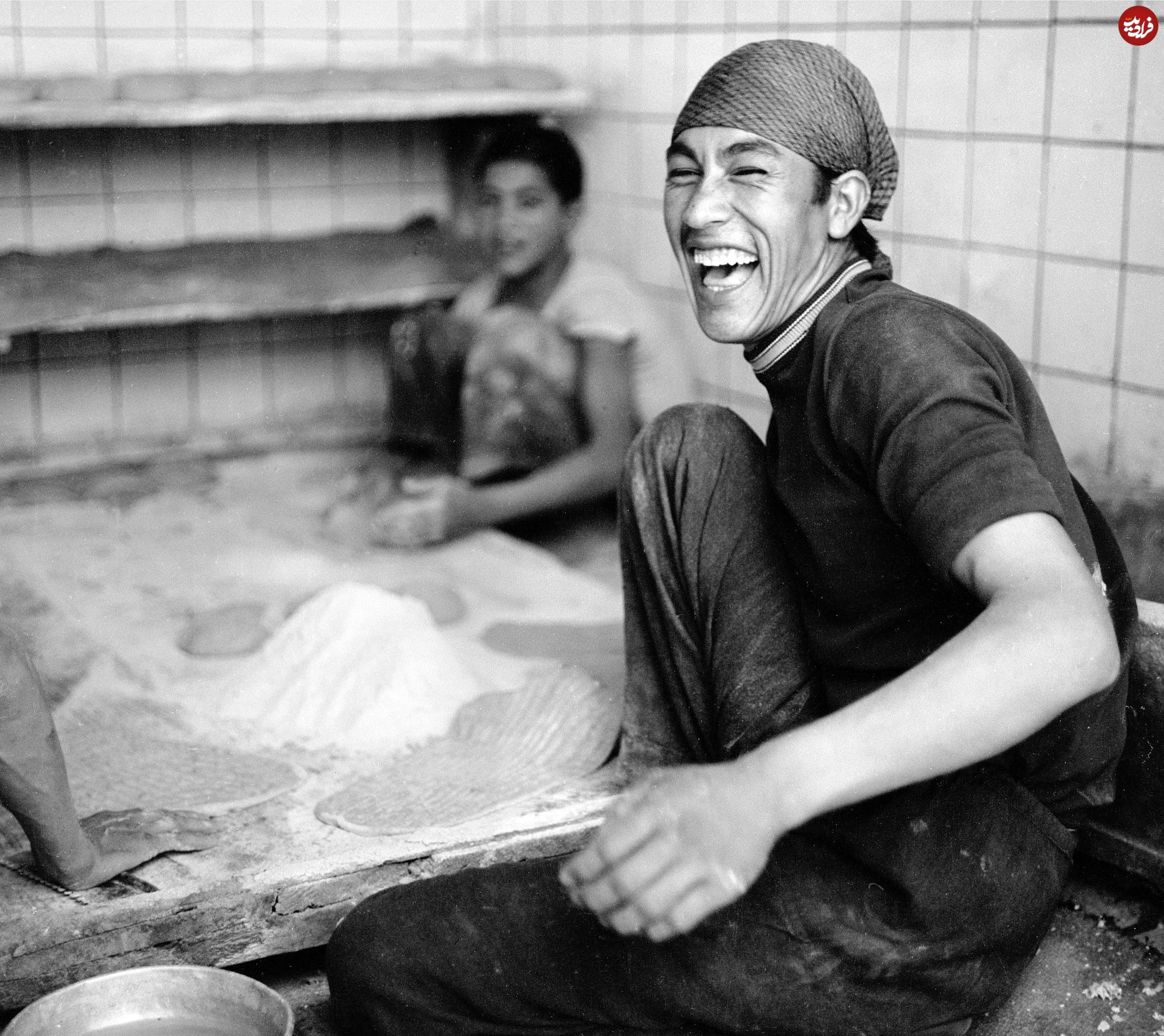 عکس؛ سفر در زمان؛ «نانوای جوان در حال پخت نان بربری» در تهران؛ سال 54