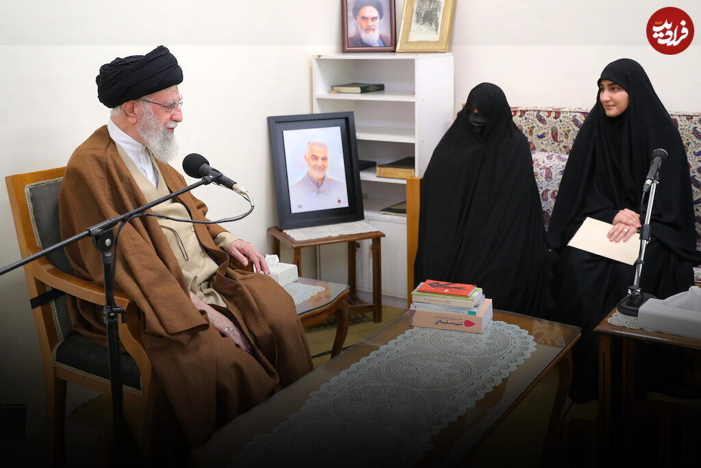 عکس؛ سفر در زمان؛ «همسر و دختر سردار سلیمانی» در حال گفتگو با رهبر انقلاب»؛ سال 1402