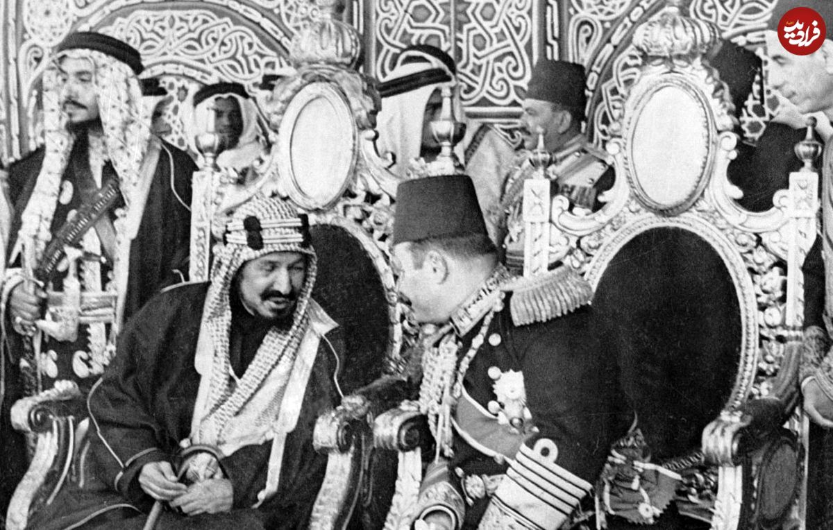 در ادامه تصویری جالب و کمتر دیده شده از ملک عبدالعزیز اولین پادشاه عربستان را در کنار مهمانان خارجی اش و در حال خوردن یک شتر بزرگ در سال 1325 مشاهده می کنید.