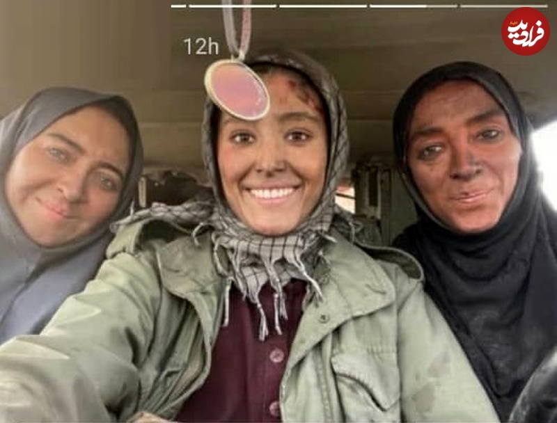 در اینجا تصویری از نیکی کریمی (سمت چپ) را در کنار دو تن از همبازی‌هایش در پشت صحنه فیلم «دسته دختران» ملاحظه می‌کنید.
