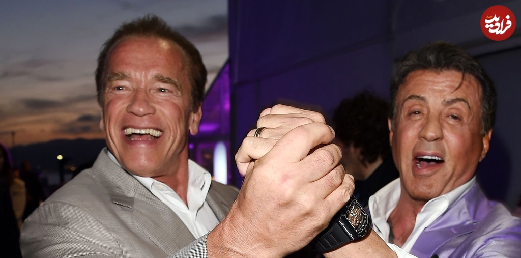 در ادامه دو تصویر جالب و دیدنی از ژست صمیمی و دوستانه آرنولد شوارتزنگر را در کنار سیلوستر استالونه و در سال 1394 هجری شمسی می بینید.