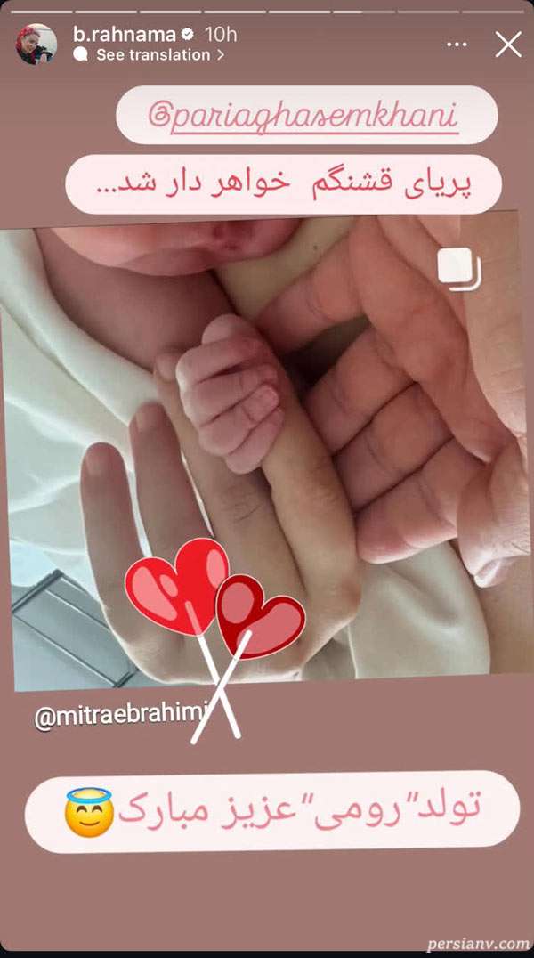 فرزند پیمان قاسم خانی ، نویسنده و کارگردان نامآشنای سینما و تلویزیون ایران، با تبریک و ابراز خوشحالی بهاره رهنما، بازیگر شناختهشده کشورمان، همراه شده است. این واکنش در فضای مجازی به شدت مورد توجه قرار گرفته و بار دیگر به موضوعات خانوادگی و روابط انسانی پرداخته است. واکنش غیر منتظره بهاره رهنما به تولد فرزند همسر سابقش را در پرشین وی ببینید.